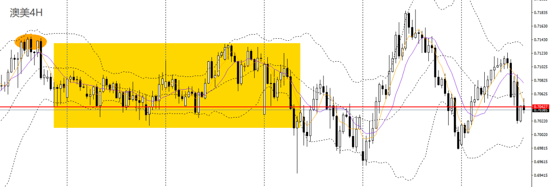 澳美昨日完全收复周二涨幅,日线RSI跌至50左右,4小时仍处于0.70-0.7140区间震荡格局,在突破前可维持区间内高抛低吸的思路。