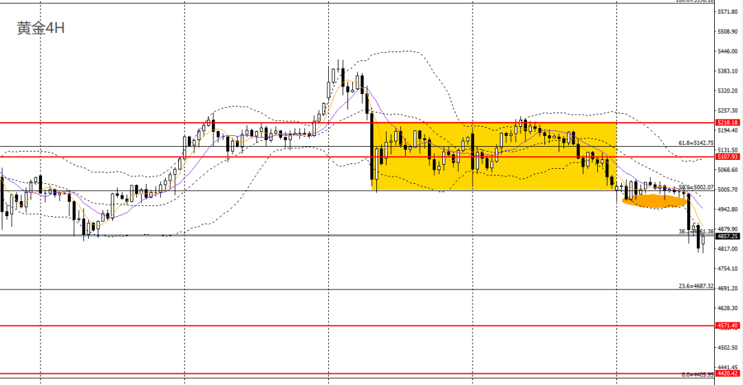黄金昨日重幅受挫,下破日线布林下轨,日线RSI失守50,4小时下破4960一线支撑,打破区间震荡格局,呈自由落体,4900附近承压可进空。黄金/人民币如于1084附近承压可进空。