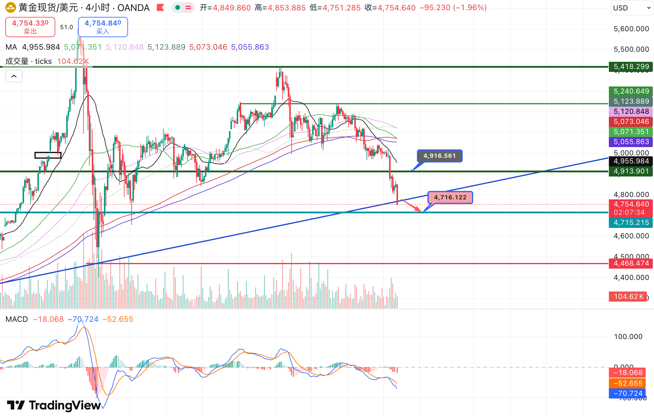 德璞资本徐文婷欧盘前瞻:黄金放量下跌,第一支撑锁定4753