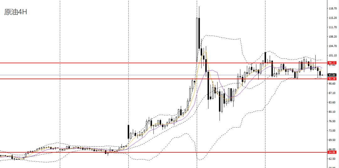 美原油昨日收长阴柱,日线RSI自高位回落,4小时未能升破102-104压力带,短线仍趋于震荡,可保持观望。
