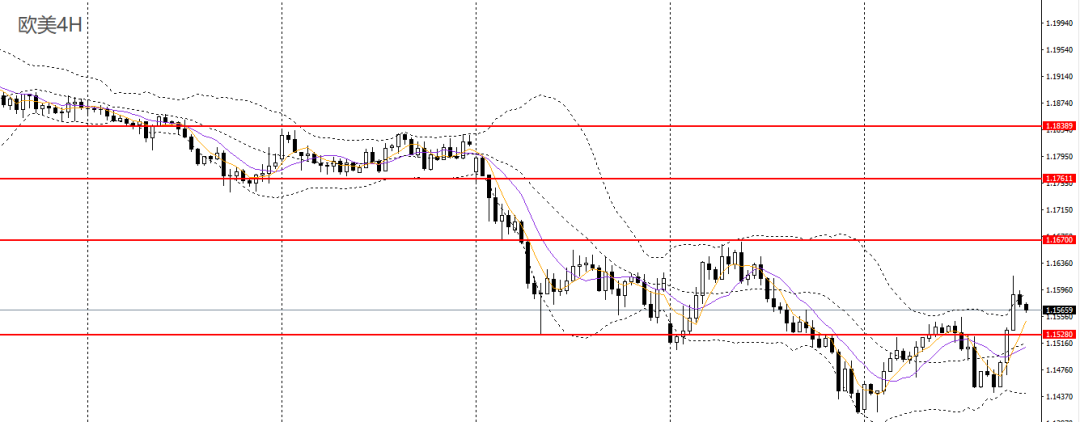 欧美昨日收看涨吞没阳柱,升破10日均线,日线RSI升至50左右,4小时站上1.1550附近阻力,短线整体趋势仍偏弱,1.1550一线企稳可继续进多,如彻底站上1.16,可看多至1.1650-1.1670。