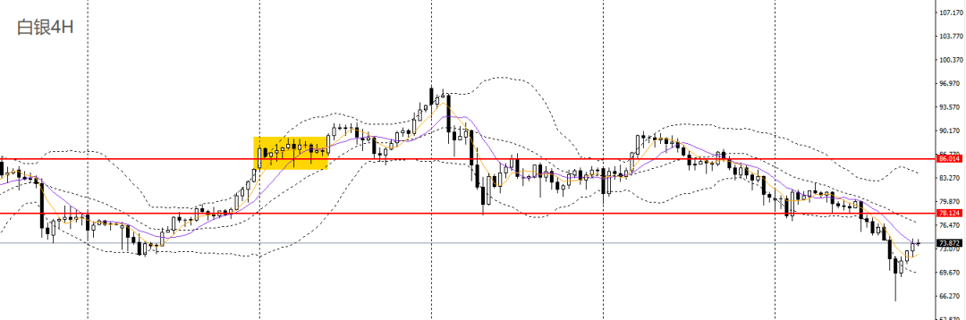 黄金连续2日重幅受挫,承压于日线布林下轨,创1个月以来新低,4小时一度逼近4500一线支撑,空头力量减弱,但整体走势仍偏弱,稳健者可暂时观望。黄金/人民币可暂时观望。