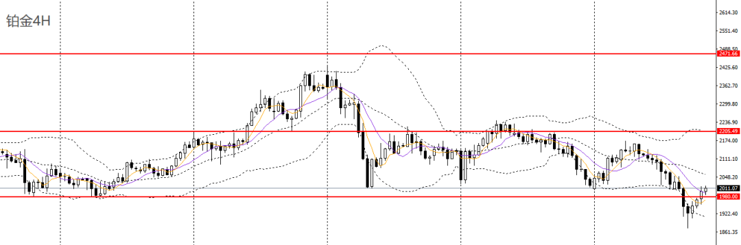 铂金昨日延续阴跌,下破颈线支撑2000关口,打破此前震荡区间,但4小时连续回升,空单建议离场。