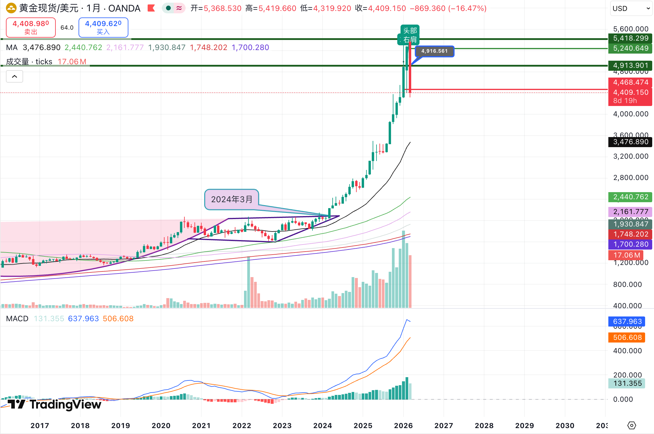 过去三个交易日,金价累计跌幅已超过10%。如果以月线级别30%的回调作为“正常波动区间”来衡量,自3月以来黄金已回吐约15%,且在经历如此剧烈的下跌之后,短期内想重新回归上涨趋势的难度明显加大。