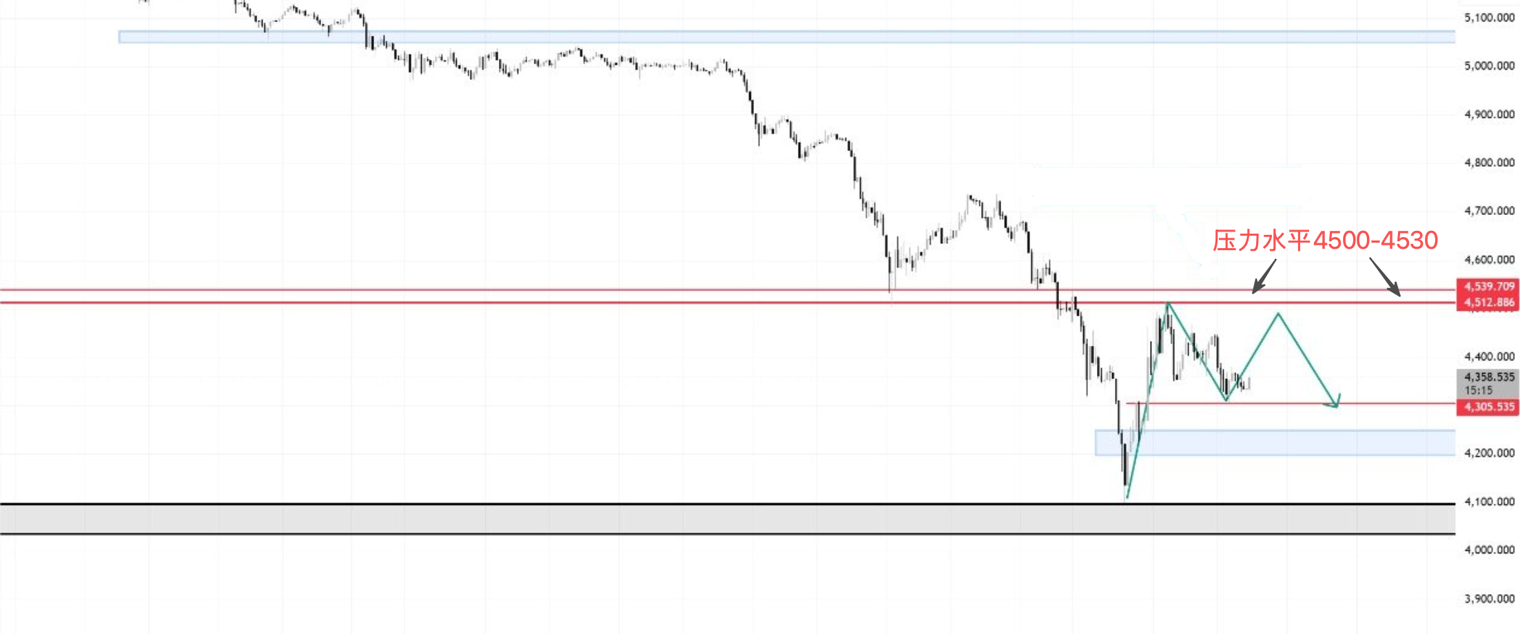 高空思路:4450–4480区间分批做空,目标4305–4320