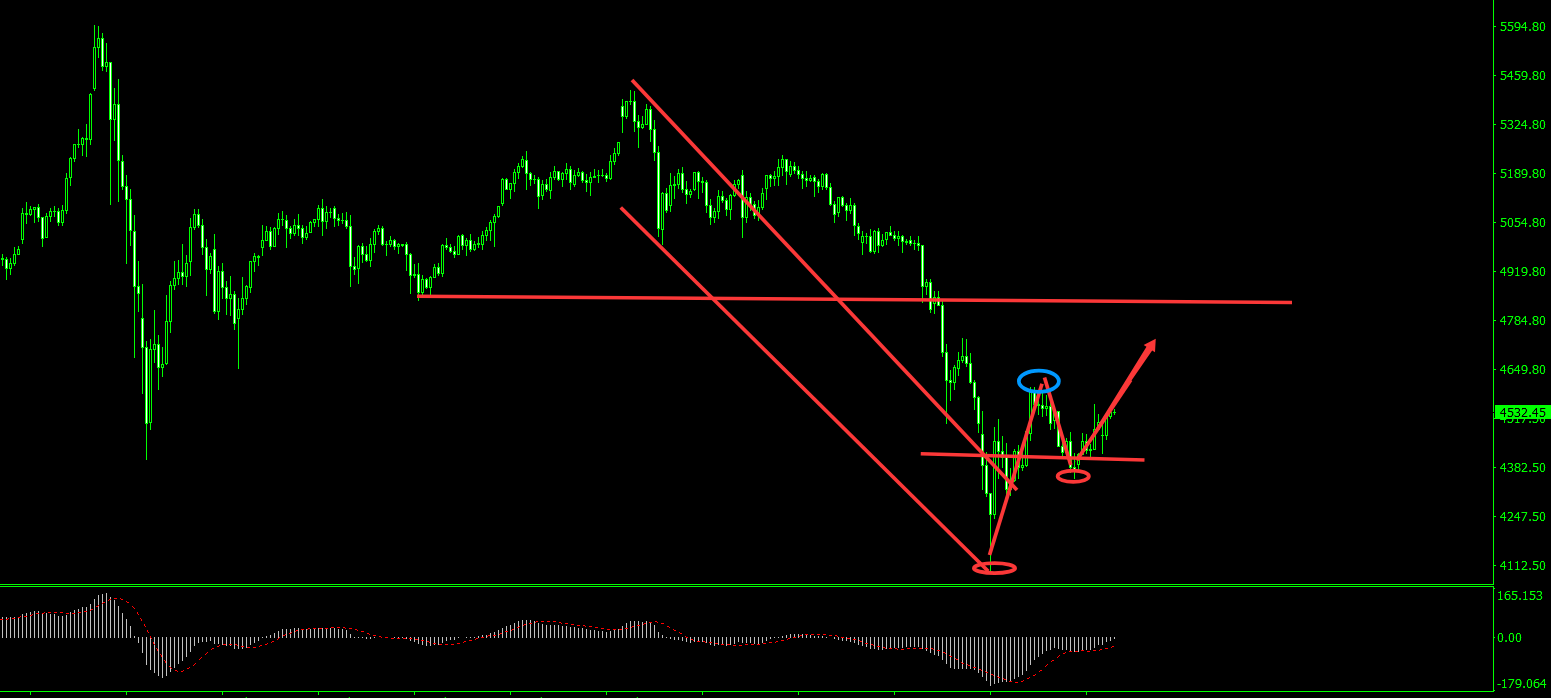 旷氏点金:黄金早盘4500开多后 晚间低多还得继续