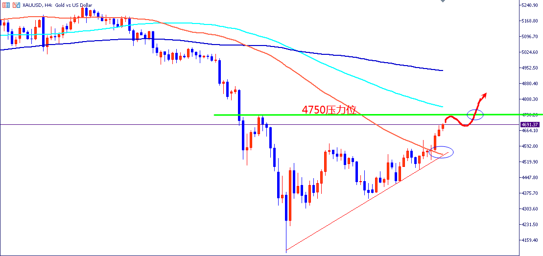 今日走势来看:金价延续突破后回踩整固、震荡上行节奏,大概率先小幅回踩确认支撑,再震荡拉升。回踩 4650-4630 美元区间企稳,将再度上攻 4700-4750美元;若快速下探 4630 美元,仍是低多良机,深跌可能性极小。