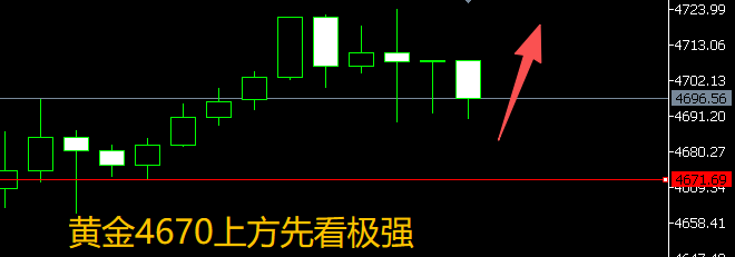 短线上,H4方面还是一个强势走势,均线多头排列,金价沿着布林带上轨运行,很强势的走势,所以今天继续看强,们目前金价回落,小时线的支撑也到了,所以现价4693直接多,防守4670,看4735破位持有看4780.上方强势压力关注44800-4850.看情况去尝试短空!目前依然关注欧盘的强弱,只不过回撤或者反弹的时候不能按照常规去判断,毕竟现在行情波幅很大,大家灵活变通去进场,欧盘强,美盘前回撤继续多;欧盘弱,美盘看探底回升!