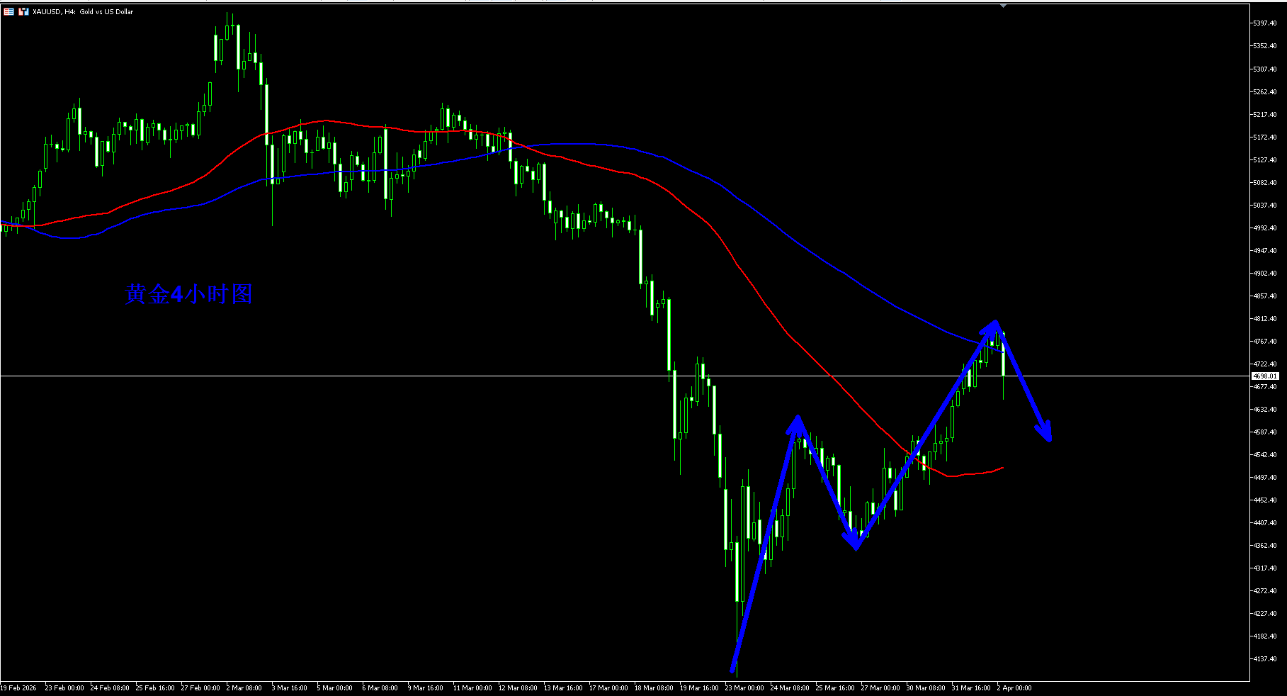 黄金4760空,保护4800,目标4650-4600;