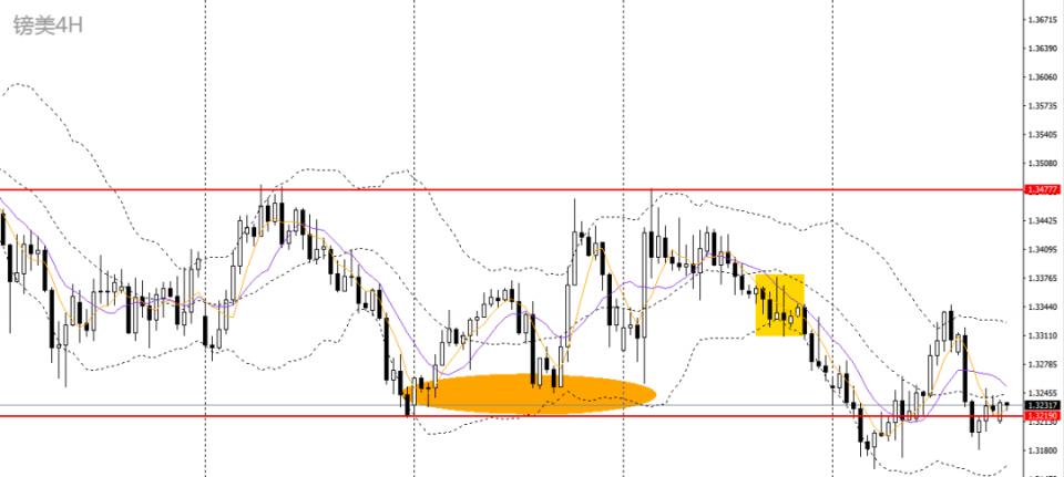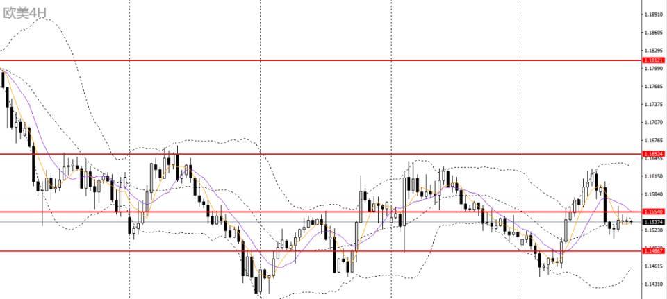 欧美昨日收长阴柱,徘徊于5日、10日均线附近,4小时仍于1.14-1.1650区间内震荡,短线方向不明朗,可保持观望。