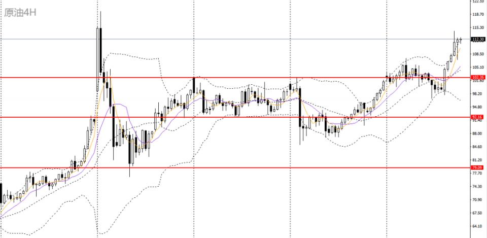 美原油周四强势拉涨,创下3月初以来新高,4小时呈空中加油,如于110附近企稳可继续进多,后市预计将上探前高。