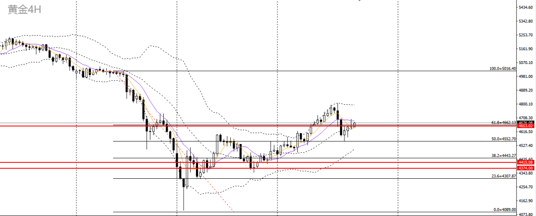 黄金周四涨势暂歇,触及日线布林中轨,4小时未能有效升破4800关口阻力,短线整体仍趋于震荡,稳健者可保持观望。黄金/人民币可暂时观望。