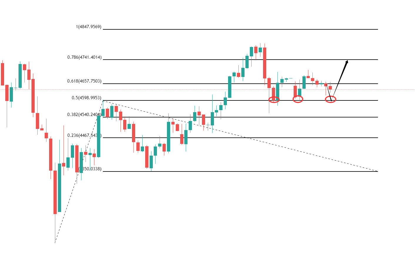 拓展序列给的阻力位也非常明显,除了我所标注的4600以外,高点还有4750,这两个位置的得失将是短期方向的关键,说白了,前四天先破哪,黄金就有强弱之分了,所以保守4600附近给到的话,我完全可以拿百元大关当防守,去看个几十美金的反弹区间没有问题,最起码看到4650也算一个50美金的交易,不过有一点要强调,短期就算跌破4600我也不会追跌的,因为周内看跌本就不在我的交易规划之内。