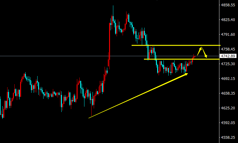 【周四操作】:黄金晚间反抽于4755-60附近做空,目标看4720-10附近,损4770.