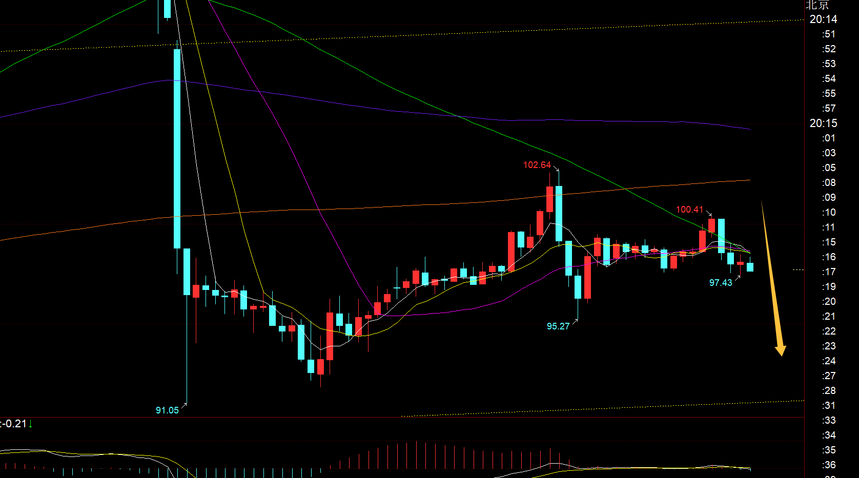 原油方面:102之下阻力仍在, 91支撑,一旦有效失守91通道下轨,则会延续下挫;