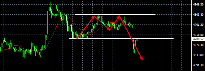 目前黄金反弹没有力度,反弹就是空,九这么简单,四小时线直接下降了一个台阶,而且均线明显压制着黄金上行,被恩在地板上摩擦,4750就是周五的高点,也就是阻力位