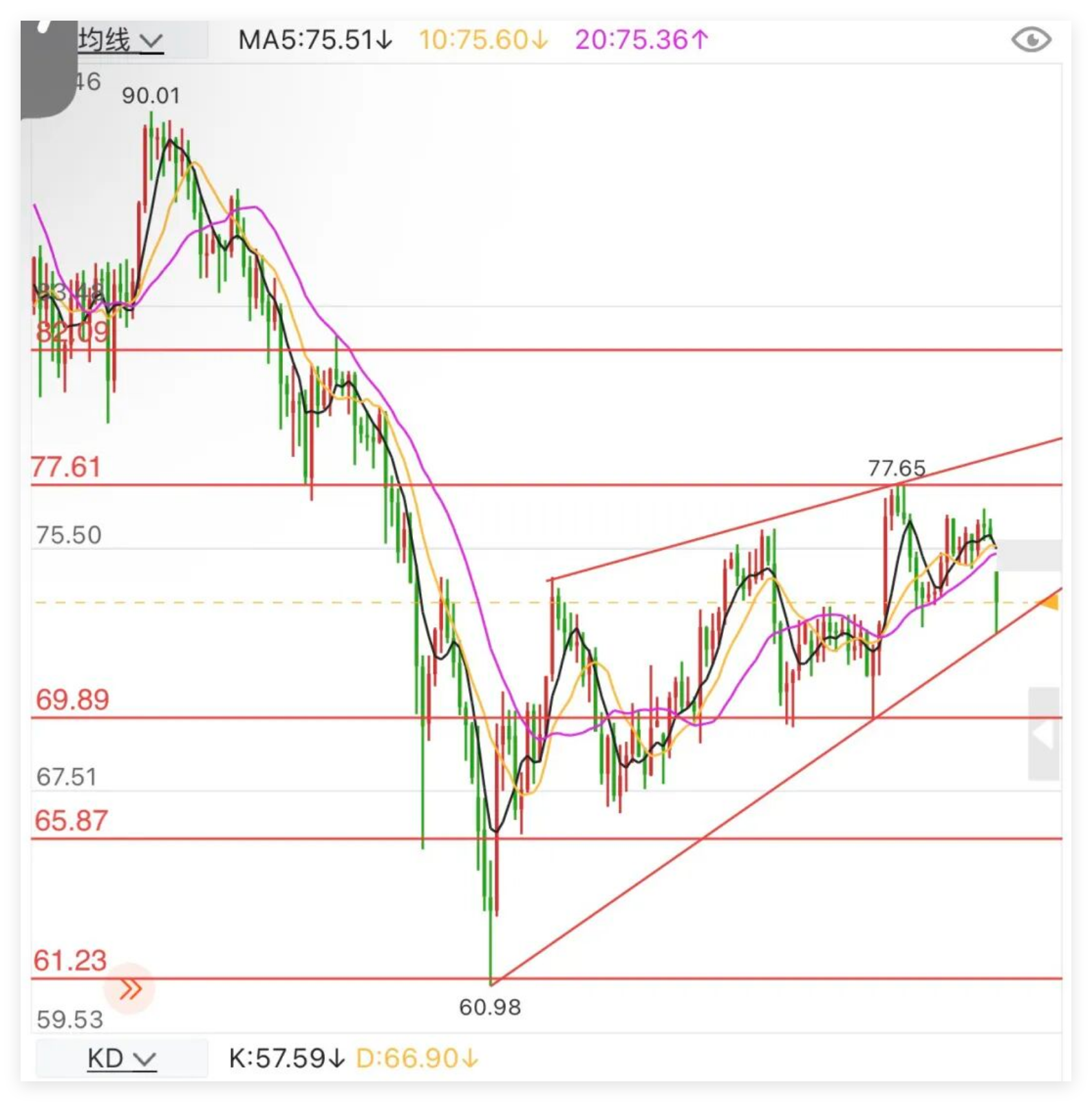 国际白银行情,最近反复强调78美元和80-82美元阻力看下跌,上周基本在70美元以上,78美元以下反复折腾。