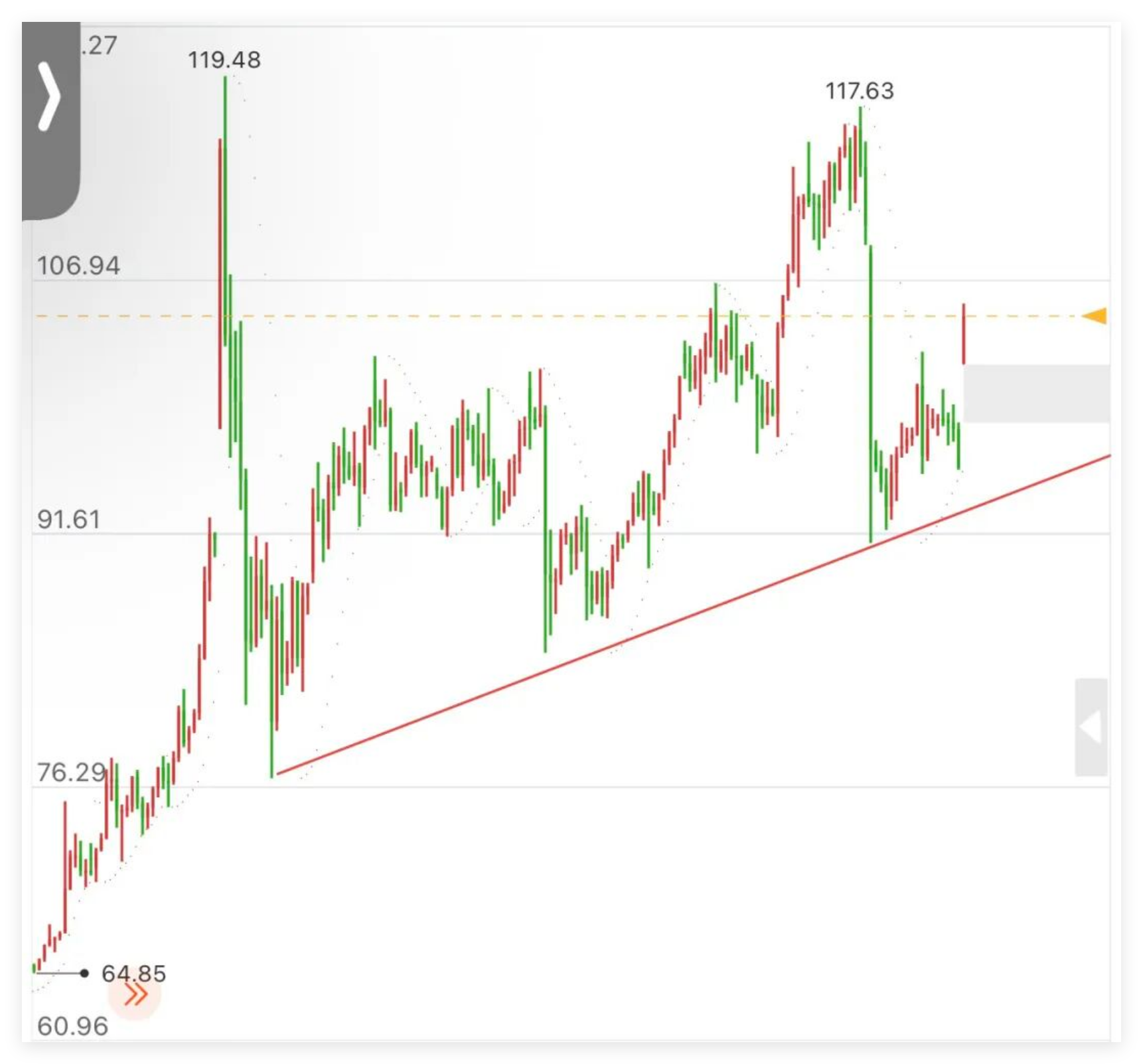 美原油连,最近反复原油受朗子局势影响大;一个消息上天,一个消息入地。原油在上周三大跳水之后,周四如期走反弹;并且伊朗局势到了谈谈打打,打打谈谈的阶段,也注定原油会拉锯。我们关注消息,但不可迷恋消息,以盘面为主!