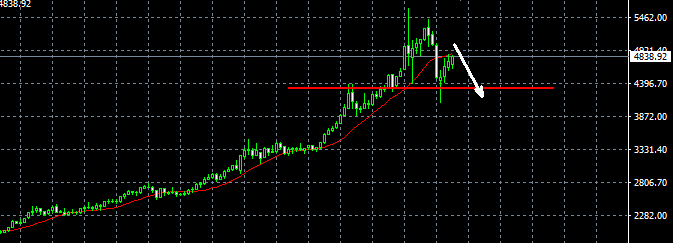 黄金阻力还是验证了4850有效果的,再次被挡在门外了,我们还是看回落了,九这么简单