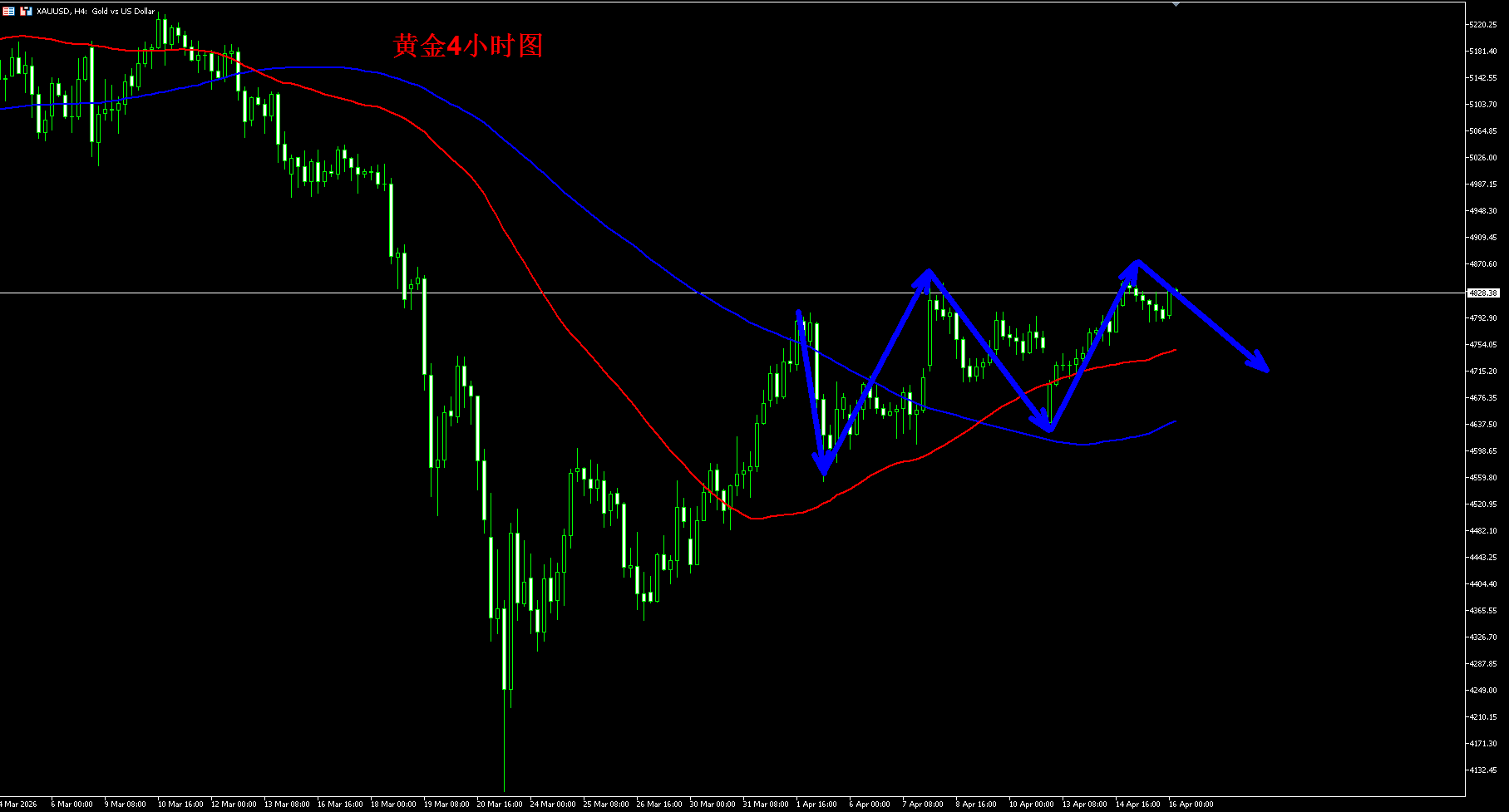 黄金4870空,保护4900,目标4750-4700;