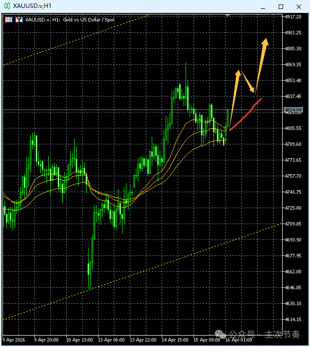一句话看懂黄金Gold:冲高回落,均线系统提供依托,短线依然保持上行基调。