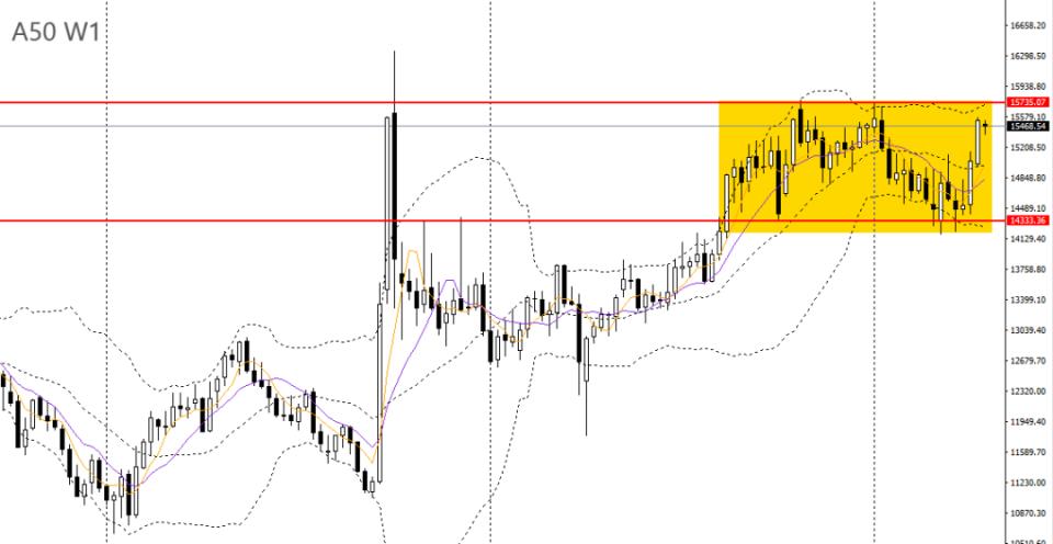 A50上周收长阳柱,逼近周线前高,如进一步升破,波段上行空间将打开。周五刺破前高,仍受5日均线依托,日线RSI到达高位,15400一线存在一定支撑,如继续维稳于上方,后市仍有望挑战15700附近。