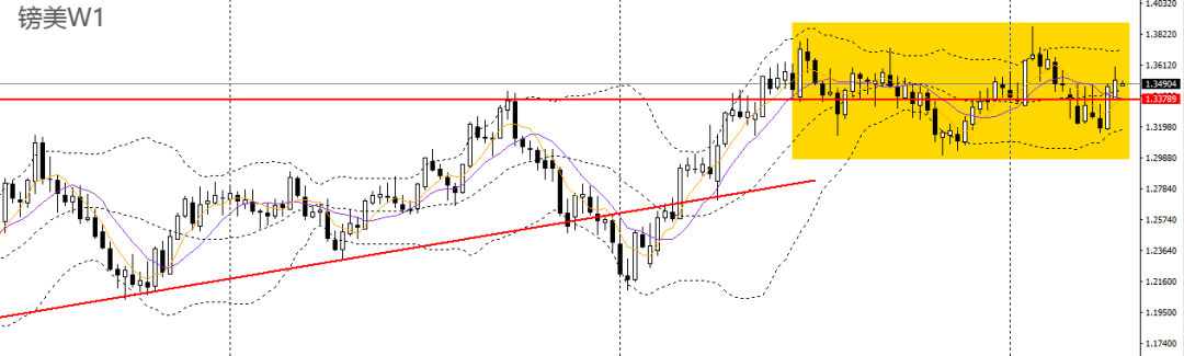 镑美上周继续走高,RSI位于50左右,波段仍处于高位震荡格局。周五冲高回落,多次于1.36大关遇阻,周一亚盘跳空走低,回踩关键支撑1.3470,如反抽至1.35附近承压可进空。
