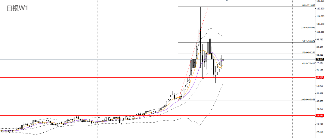 白银连续多周走高,升破10周均线,波段有望延续此前多头走势。周五小幅回升,仍立于5日均线上方,4小时上探83一线阻力,短线趋势进一步转强,78上方可继续择机做多。