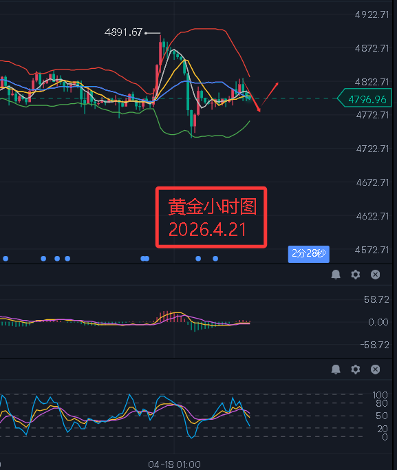 现货黄金(伦敦金):技术面上来看昨日日线收了一根小阳柱,布林带开口,KDJ指标形成死叉,MACD快线处于慢线上方但红色能量柱逐渐收敛。目前来看大趋势仍旧偏上,中线阶段性上行。短线4小时图中来看,布林带开口,KDJ指标死叉放量,MACD快慢线相互缠绕。小时图中来看,布林带缩口,KDJ指标形成死叉,MACD快线处于慢线上方但红色能量柱逐渐收敛。短线价格如期回调后反弹,目前短线关注回调情况,下方支撑关注4777/4738/4700一线,上方压力关注4828/4852/4891一线。