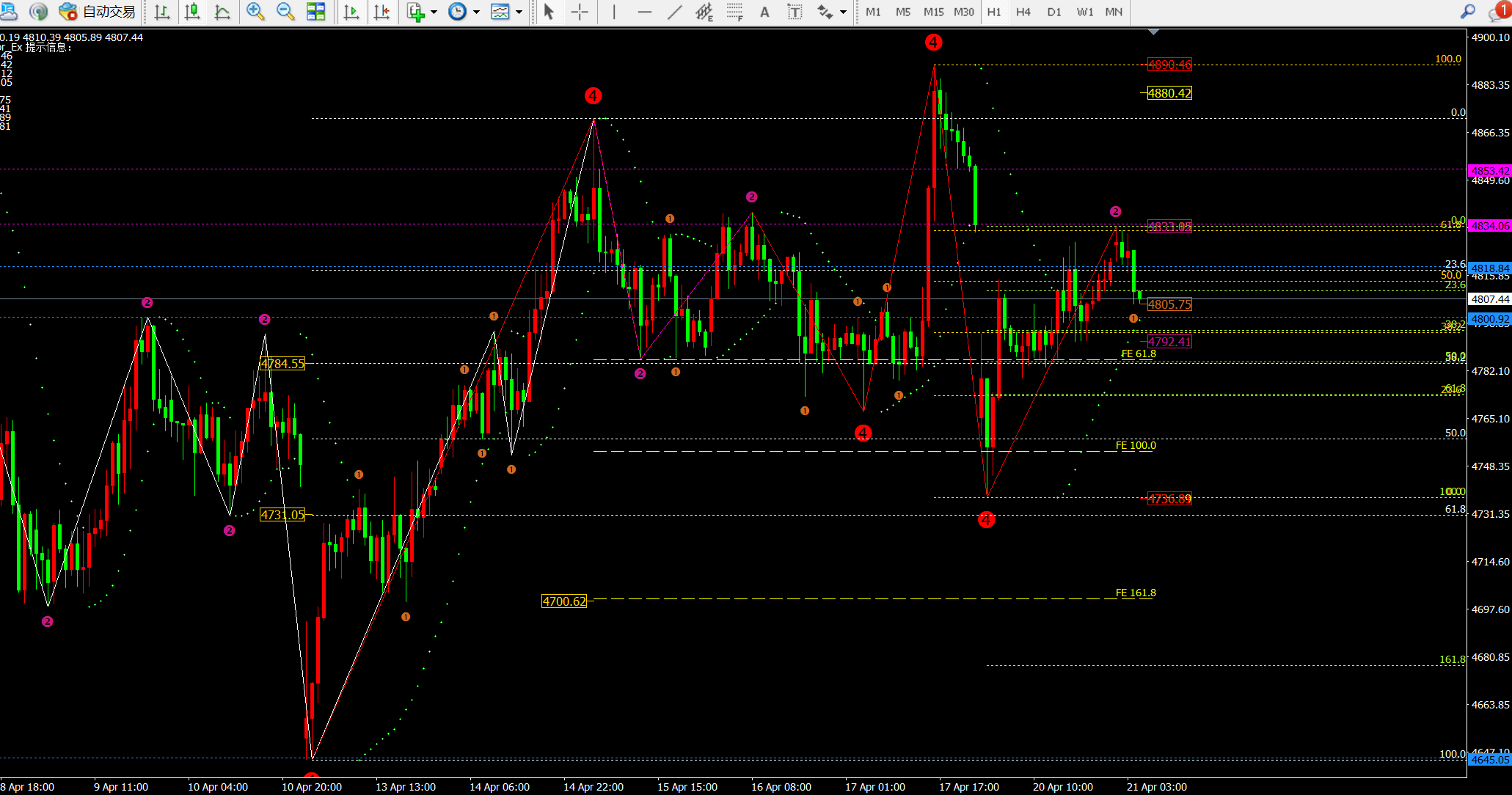 从昨日走势看:当前支撑位于4780-4792-4796,其次才是4706附近。