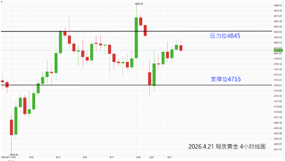 现货黄金:建议偏多操作,多单参考价位4795,止损位4755,获利目标4845附近。