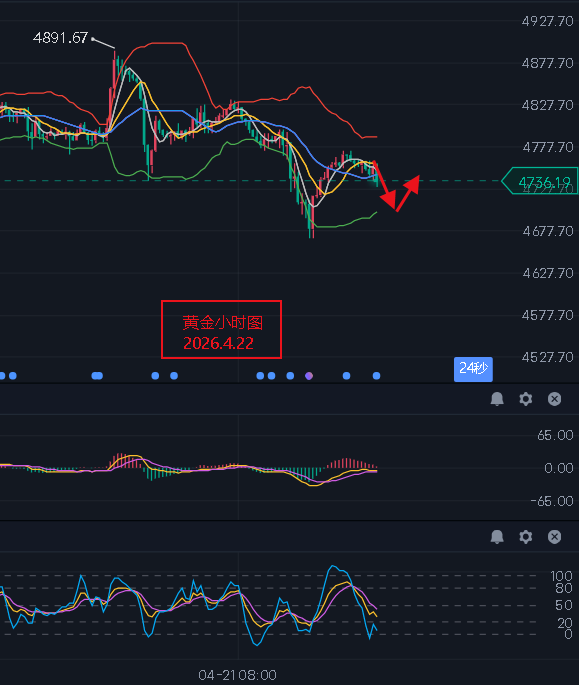 现货黄金(伦敦金):技术面上来看昨日日线收了一根小阴柱,布林带开始缩口,价格即将选择新的方向,KDJ指标死叉放量,MACD快线处于慢线上方但红色能量柱逐渐收敛。目前来看大趋势仍旧偏上,中线阶段性上行。短线4小时图中来看,布林带开口,KDJ指标金叉放量欲拐角形成死叉,MACD快慢线相互缠绕。小时图中来看,布林带开始缩口,KDJ指标死叉放量,MACD快线处于慢线上方但红色能量柱逐渐收敛。短线价格如期回调且最低到达我们给出的第二支撑位4668一线后反弹,跟我们预期走势完全一致,目前短线继续关注回调情况,下方支撑关注4700/4668/4615一线,上方压力关注4777/4806/4838一线。