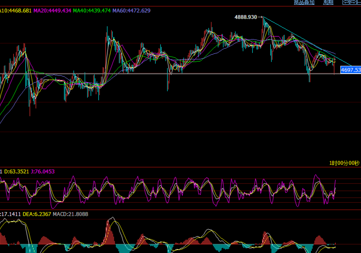 国际黄金行情,最近反复强调冲高都是做空机会,上周反复提示10周均线以及60日均线压制看下跌,最终在二者压制之下最高4890美元开始下跌。但,目前无论是下跌还是上涨,都是没有连续性,这就是我们说的大扫荡。当前的黄金就是猴子荡秋千一样的行情,上蹿下跳;黄毛画K线,全凭心情!