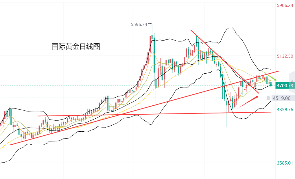 从之后的走势看,昨日周三亚盘开盘后,黄金延续隔夜收盘前的反弹走势,从4716美元涨至4772美元遇阻,欧盘盘中金价震荡回落,美盘延续跌势,至4723美元企稳;周四黄金开盘急跌,向下突破4723美元附近支撑,跌至4694美元企稳,反弹4753美元遇阻,跌至4692美元企稳,反弹4724美元遇阻后,刷新日低至4684美元。总体来看,黄金短线承压震荡,基本处于我们给出的4690美元支撑,到4776美元压力之间运行。
