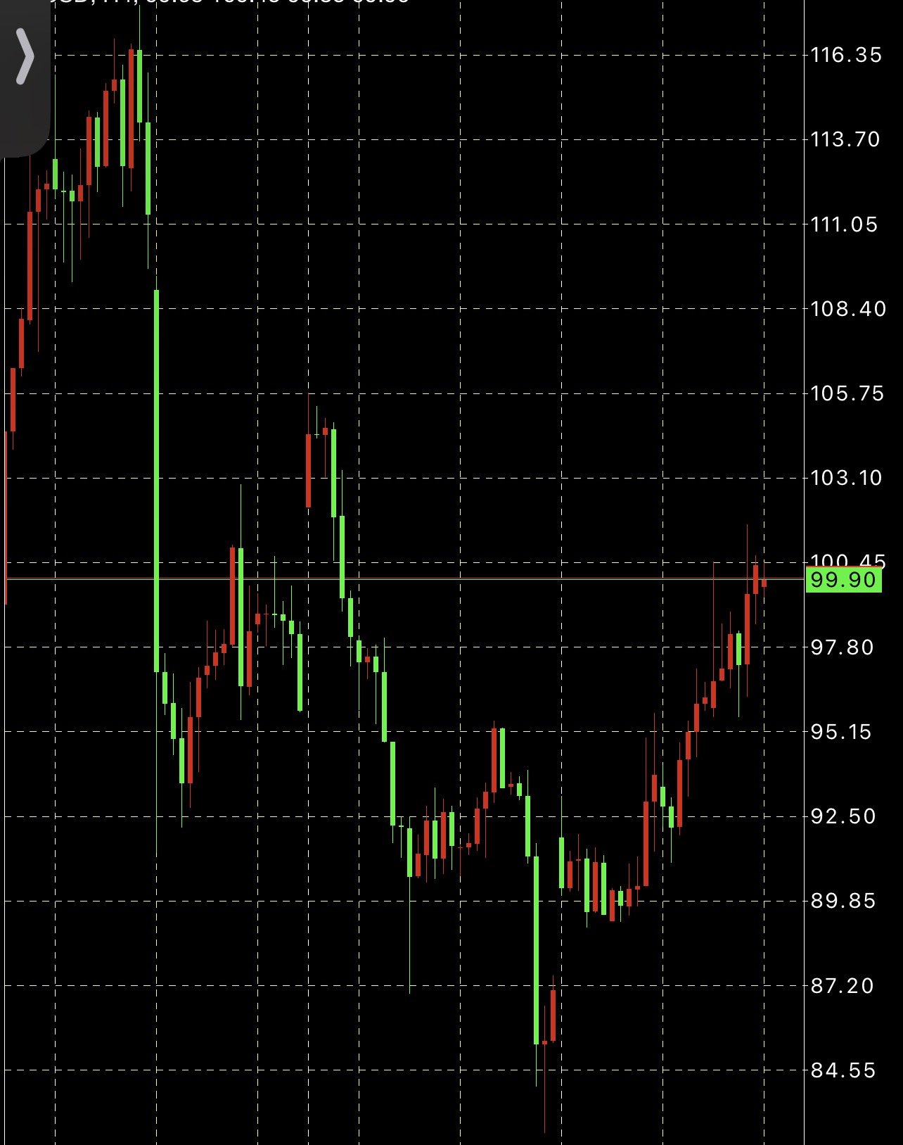 美原油连,最近反复原油受朗子局势影响大;一个消息上天,一个消息入地。虽然受消息影响,但原油符合预期,上周五探底回升之后,本周连续冲高4天,目前来到100美元关口。上周五原油大幅度下跌之后探底79美元止跌反弹。