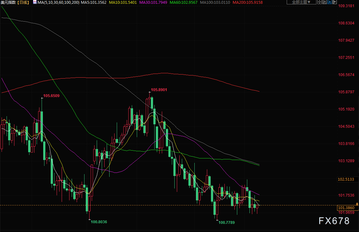 美联储对银行贷款专员进行的季度调查显示,银行继续收紧信贷,对商业贷款的需求减弱。调查结果公布后,衡量美元兑六种主要货币的美元指数小涨0.08%,报101.38,好于上个月触及的一年低点100.78。