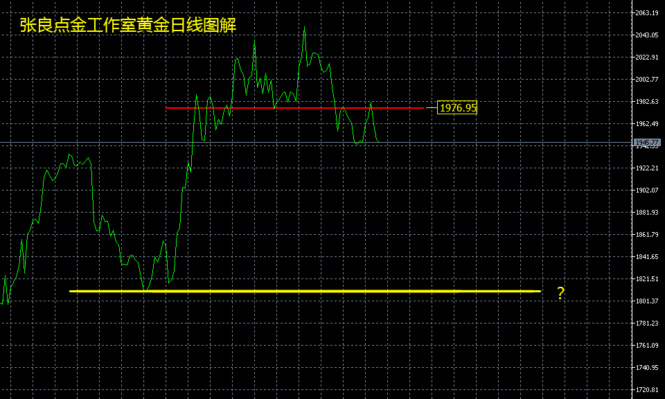 早在5.17号,黄金处于2000之上时,我就已发布文章上强调,黄金后市一旦跌破1975价格,日线将会形态见顶,届时开启中期跌势。有兴趣的朋友可以去翻阅查询。
