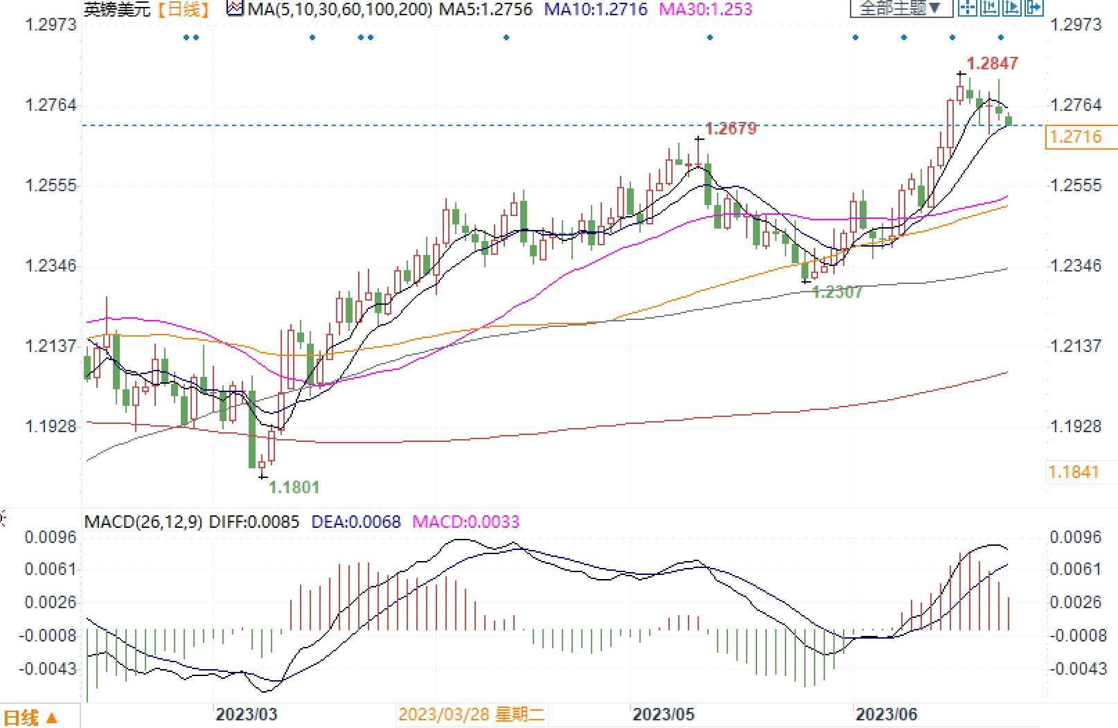 英镑兑美元日线图北京时间6月23日11:24,英镑兑美元报1.2712/14