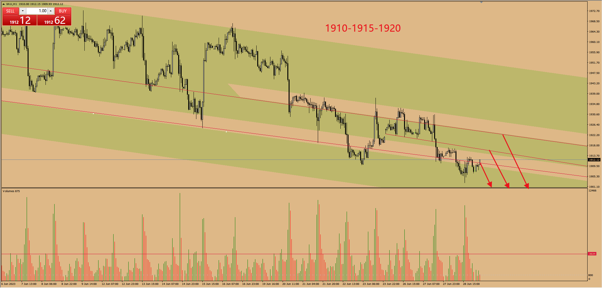 今日来看,国际金价在昨日连续不断的创出新低,趋势节奏上来看,我们看到的是黄金价格波段震荡下跌的表现,也就是高点下移,低点创新低的走势。因此交易的思路上维持高空为主,毕竟目前行情的节奏处于震荡下跌。今日需要关注到的三个交易价格分别是1910-1915-1920.当然更看好的是1920的下跌。日内我会盯盘,看金价在这三个位置的价格表现,出现反转信号的话我会寻找机会进场看跌
