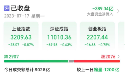 A股三大指数今日早盘低开低走,临近尾盘跌幅收窄,截至收盘,沪指跌0.87%,深成指跌0.63%,北证50跌0.71%,创业板指跌0.75%。沪深两市全天成交额8026亿元。两市超2900只个股下跌。
