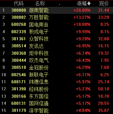 今天,虚拟电厂板块持续走强,迦南智能20%涨停,万胜智能涨超13%。