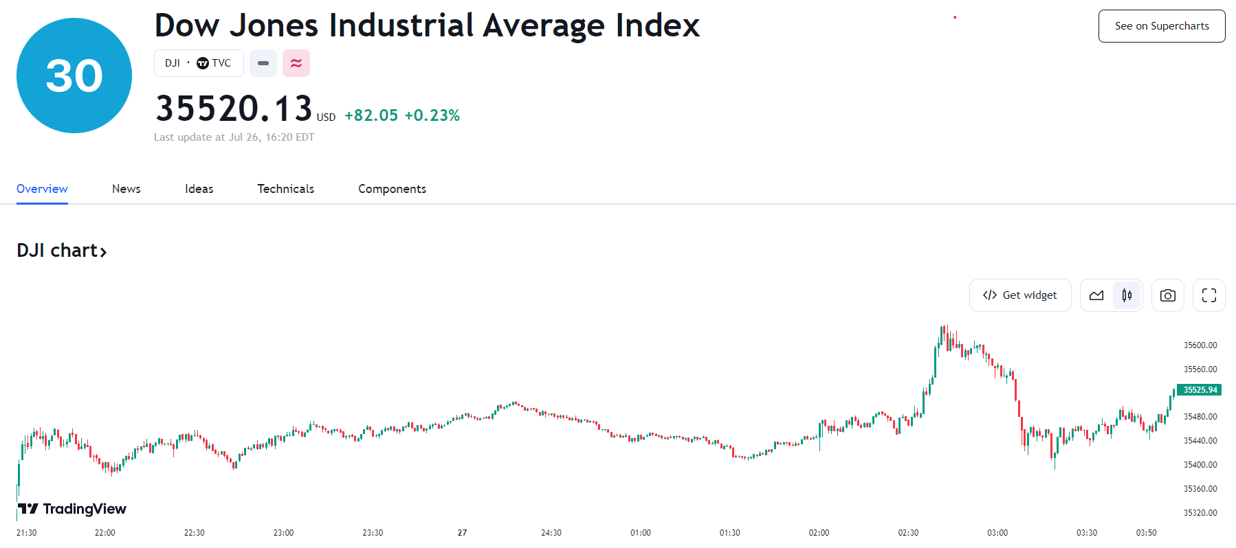 美股三大指数全天窄幅震荡。在美联储主席鲍威尔透露下一次会议可能加息,也可能不加息时,三大指数曾短线冲高;不过在鲍威尔表示今年不会降息之后,指数又回到了原来的水平。截至收盘,道指涨 82.05 点,涨幅为 0.23%,报 35520.12 点;纳指跌 17.27 点,跌幅为 0.12%,报 14127.28 点;标普 500 指数跌 0.71 点,跌幅为 0.02%,报 4566.75 点。