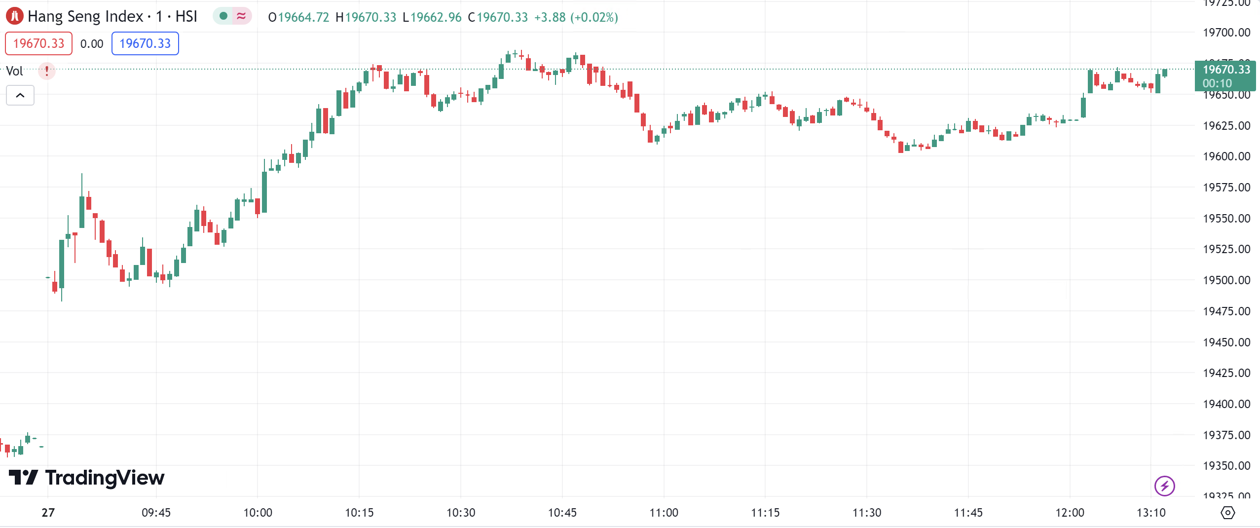 恒指涨 1.36%,报 19629.23 点