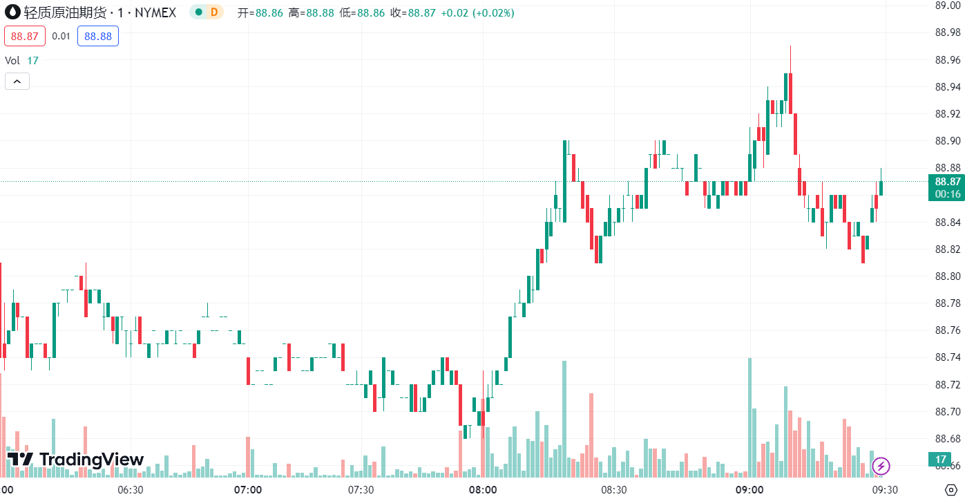 美原油期货收跌 0.32 美元,跌幅 0.36%,报 88.52 美元/桶,盘中最高曾上涨至 89.64 美元/桶 ;布伦特原油期货收跌 0.18 美元,跌幅 0.2%,报 91.88 美元/桶,盘中最高报 92.84 美元/桶,为 11 月以来的最高水平。