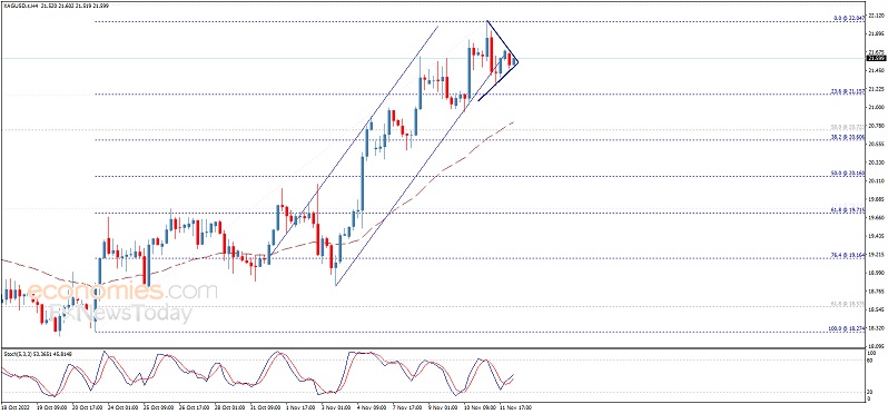Economies.com预计,今日银价交投将位于支撑位21.15美元/盎司以及阻力位22.20美元/盎司之间。