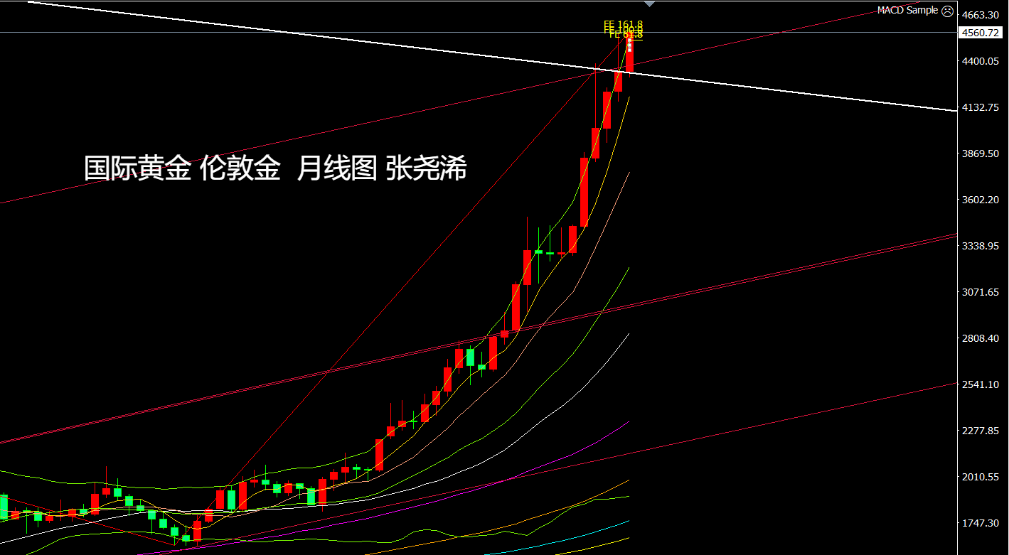 反之,如本月再度收取倒垂至趋势线之内,则需留意后市有再度展开较久的横盘调整或较大回调,去回踩4000-3900美元区域或更低位置的风险;