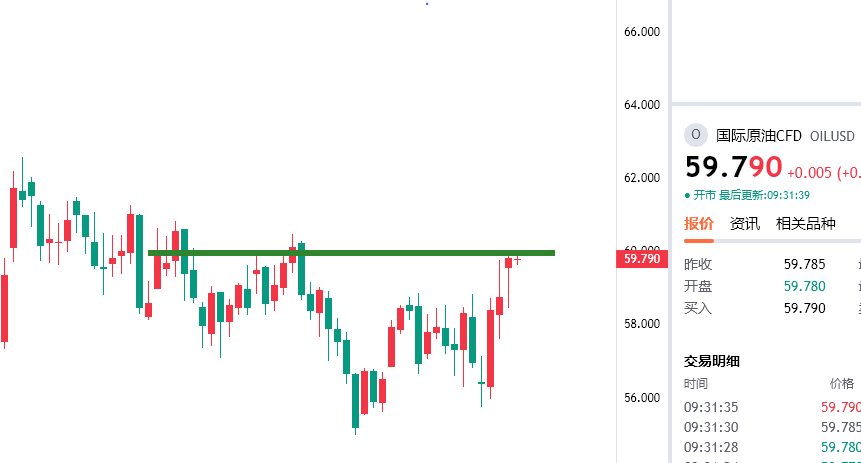 原油现在59.8/60附近空,防守60.6,看58/57下方