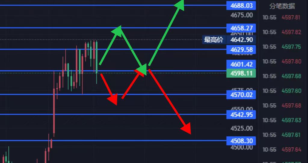 激进者:4544-40间择位多,34-28补仓,止损7个点,目标:4580-4600;