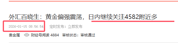 外汇百晓生:黄金延续偏强震荡,日内继续围绕4585多
