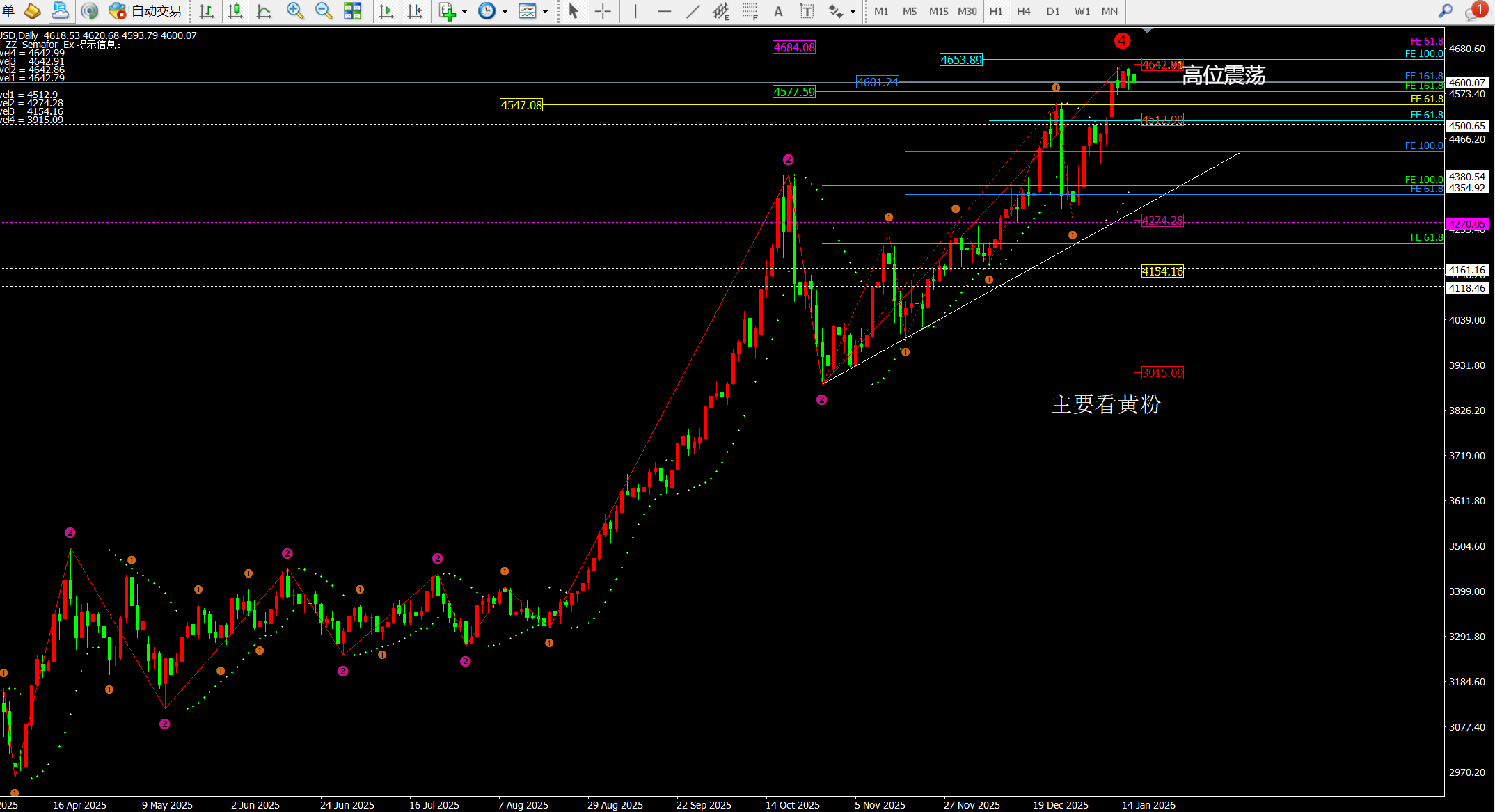 从昨日走势看:目前支撑4580-84一线,压制在4620附近以及昨日高点4632一线。